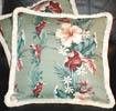 colors for the flair of the “Fun Fifties.” New to our Hawaiian throw pillow collection are sparkling glass and wood bead trim. What better way to daydream of Hawaii than