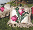 in any of the fabrics with your choice of either brush fringe, bullion, ball fringe, self-piping, matching ruffle